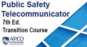 This course is designed as a transition for certification for students from APCO's Career Instructor Program who are now employed at a public safety emergency communications center (ECC). APCO’s PST1 course covers the basics skills, knowledge, and abilities every successful public safety telecommunicator needs to meet the demands of this critical work. Students successfully passing the final quiz in this course will receive APCO Institute certification demonstrating completion of a training course that meets and exceeds industry accepted national basic training standards, including the APCO/ANS 3.103.2.2015 and NFPA 1061 2014 Edition.